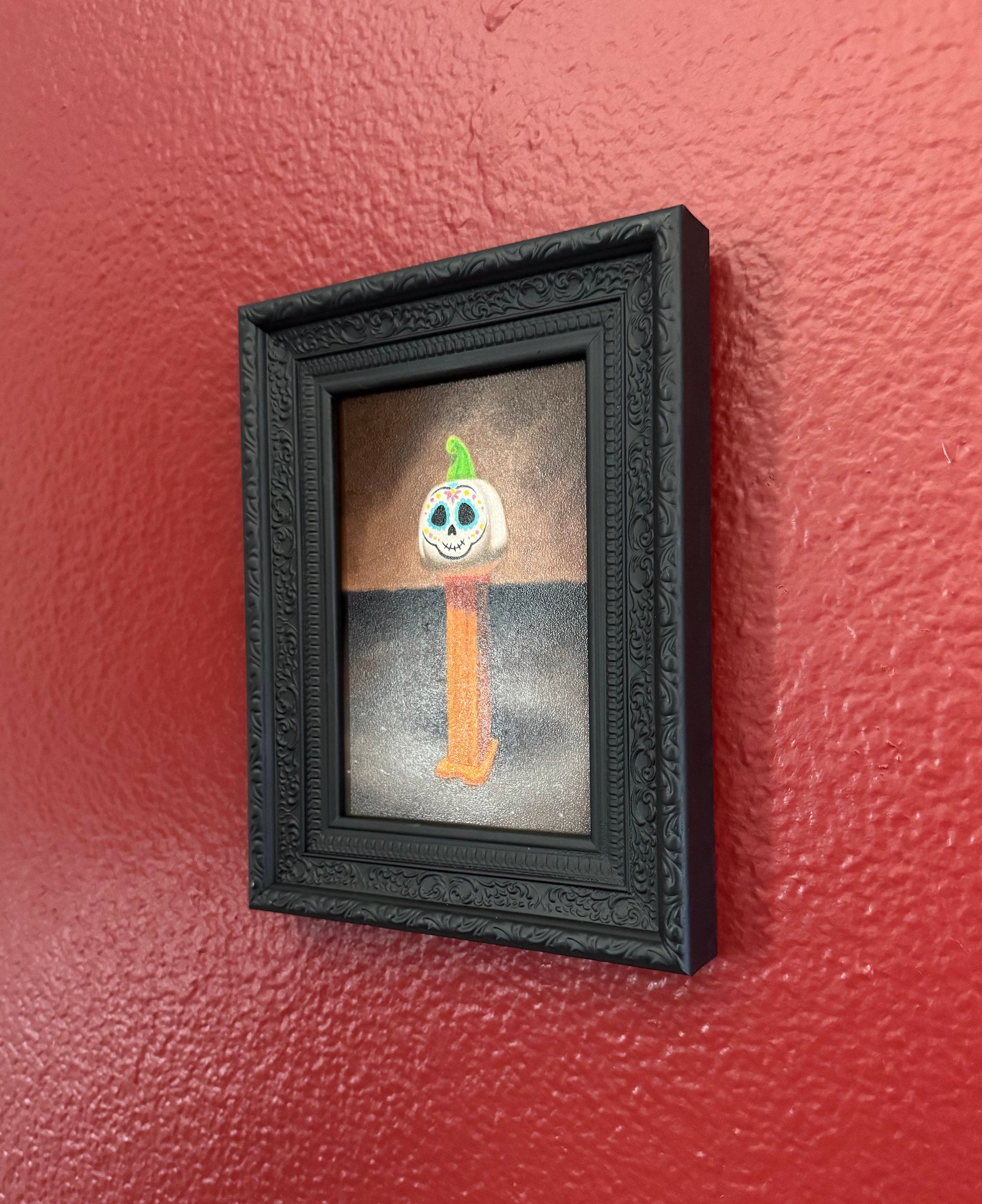 'PEZ OF THE DEAD' measures 4x5.5" and 7x9"  with frame.